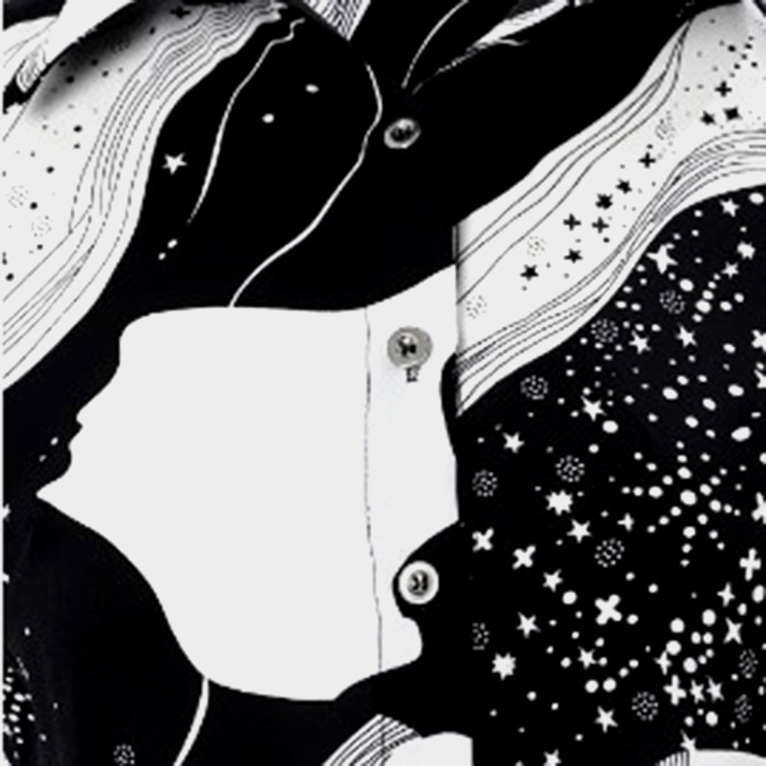 De combinatie van wit en zwart straalt klassieke schoonheid uit, terwijl de ongewone print net dat beetje extra aan je outfit toevoegt. De ideale keuze voor zowel formele gelegenheden als een stijlvolle alledaagse look.
